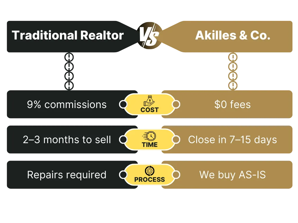 At Akilles & Co. Real Estate, we know that every home has a story and every homeowner has unique challenges. That’s why we built our process around you — not the market, not the banks, and not the middlemen.